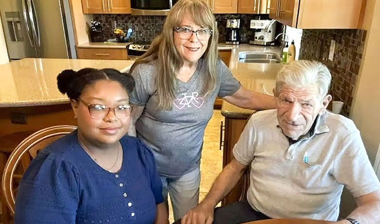 Emily Jane Crawford (left), a pre-med student at Arizona State University, visits Bud Addison (right) and provides his wife, Mary, with a much needed break.